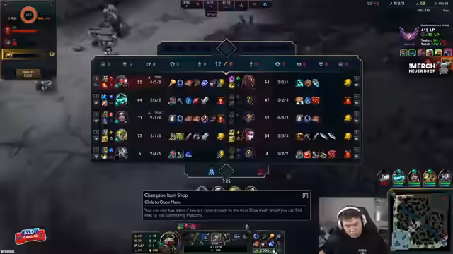 Bei League of Legends stand die Champion-Balance im Fokus. Es wurden Picks wie Azir und Ashe getestet. Kritik geübt wurde an der Meta, die schwierige Champions laut einem Kommentar zu stark strafe. Parallel wurde eine Verlosung mit einem Bierzeltgarnitur und einem Aldi-Gutschein gestartet.