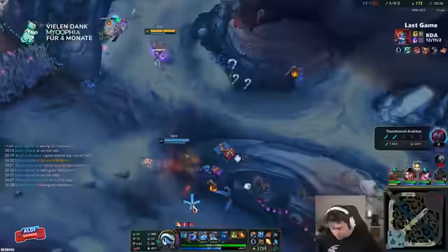 03:55:58Aldi Gaming beendet nach fünf Jahren die Sponsorenschaft, was ~50% des Einkommens ausmachte und werbefreien Streaming ermöglichte. Der Streamer betont seine Dankbarkeit, lehnt aber kurzfristige Deals mit anderen Supermärkten oder Casinos aus Prinzipientreue ab. Zukunftsoptionen wie Dubai-Angebote werden scherzhaft erwähnt. Parallel dazu kämpft er im LoL-Match gegen einen fedden Ekko und analysiert Teamkompositionen, während er betont, dass seine Sponsorensuche keine Auswirkungen auf den Content haben wird.