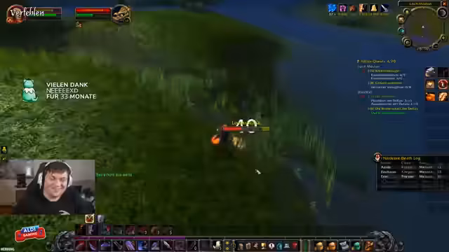 03:09:54Während des Levelns im Loch-Modan wird der Spieler von einem Level-60-Rogue gezielt angegriffen und getötet. Der Griefer nutzt Mechaniken wie Mob-Pulling und Vanish, um Aggro weiterzugeben. Es wird erwähnt, dass der Angreifer bereits mehrere Teilnehmer des Events eliminiert hat. Blizzards Konsequenzen für offensichtliches Griefing werden thematisiert – permanente Account-Sperren. Der Vorfall unterstreicht die Risiken des Hardcore-Servers, führt aber auch zu humorvollen Vergleichen mit der South Park WoW-Episode.