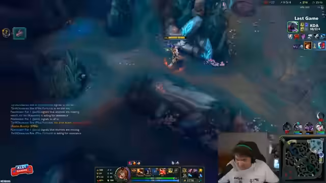 00:07:11Der Fokus verschiebt sich auf das Gameplay von League of Legends. Der Streamer erklärt seine Tagesziele, 300 LP zu erreichen und als Toplayer zu spielen. Während des Spiels analysiert er laufend Matchups, Strategien und Fehler. Er kritisiert den schwachen Champion Illaoi, diskutiert über den Wert von Barrier statt Exhaust und stellt taktische Überlegungen an, wie man sein Team in einem fast verlorenen Game tragen könnte.