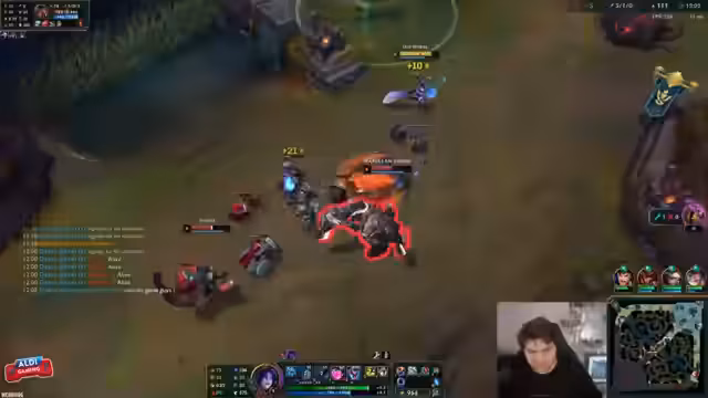 06:00:16Der Streamer spielt League of Legends gegen einen Gegner mit Cassiopeia und bittet den Chat um Unterstützung ('Keck-Wee-Energie'). Er kommentiert sein Spiel und findet, dass er besser spielen könnte. In der Interaktion mit dem Chat kommt es zu humorvollen Momenten und Diskussionen über TikTok-Inhalte. Der Streamer reagiert auf verschiedene Chat-Einträge und versucht, das Team zum Sieg zu führen, wobei er technische Aspekte des Champions 'Gangplank' erklärt.