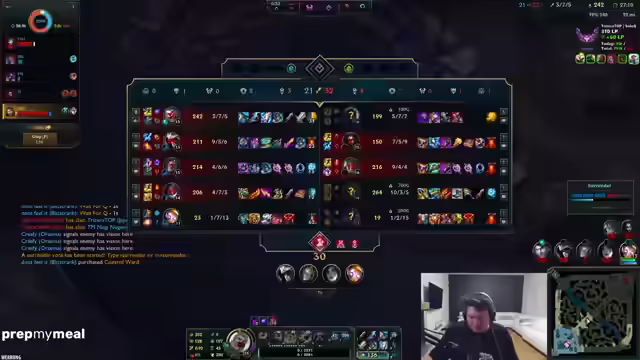 05:02:57Der Streamer stellt fest, dass der Udyr ein großes Problem darstellt, da er sehr tanky ist und die gegnerischen Carries ebenfalls stark sind. Er überlegt, wie er durch den Alistar und den Udyr durchkommen kann. Der Flash des gegnerischen Djinn wird als Vorteil gewertet. Der Streamer erklärt, dass er Range-Toplaner bevorzugt, da sie ihm besser liegen, und er versucht, schnell für Challenger zu climben. Er möchte dies wie bei Articary in unter einem Monat schaffen. Er erwähnt, dass er keine neuen Champions lernen kann, sondern auf seine Stärken setzen muss. Heimerdinger, GP und Gragas sind seine Favoriten. Abschließend wird festgestellt, dass der Alistar ein großes Problem darstellt.
