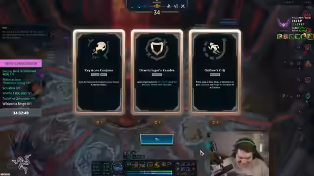 04:43:44Der Streamer ist sichtlich über seinen Erfolg beim Climbing in der Elo überwältigt. Er erwähnt, dass er seit Wochen keine Losing Session mehr hatte und das Gefühl hat, schneller voranzukommen als je zuvor. Dieser unerwartete und anhaltende Erfolg fühlt sich surreal an, da er bisher oft mit dem Server kämpfen musste. Die aktuelle Win-Streak beschreibt er als 'absoluten Fiebertraum' und fühlt sich durch das Projekt wieder motiviert und am Spielen Spaß zu haben.