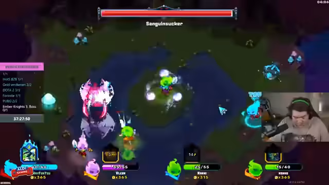 09:51:55Im letzten Teil der Challenge kämpft das Team gegen einen schwierigen Miniboss, der seine Fähigkeiten schnell ausführt und den Streamer in eine gefährliche Lage bringt. Als Melee-Kämpfer ist es besonders schwierig, dem Schaden auszuweichen. Die Gruppe entscheidet, die Taktik zu ändern und den Schaden zu ignorieren, um den Boss schneller zu bezwingen.