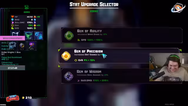 07:14:18Nachdem der erste Boss in Ember Nights besiegt war, stand die Wahl der Upgrades an. Das Team musste sich absprechen, welche Fähigkeiten jeder Spieler nehmen sollte, was zu internen Diskussionen und Verwirrung führte. Die Zusammenarbeit war geprägt von kleinen Verratshandlungen und Pech, als wichtige Items wie Rüstung oder Heiltränke verloren gingen oder falsch verteilt wurden, was den weiteren Verlauf des Spieels erschwerte.