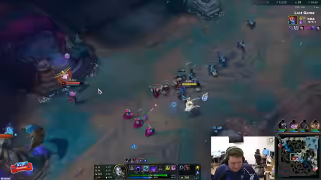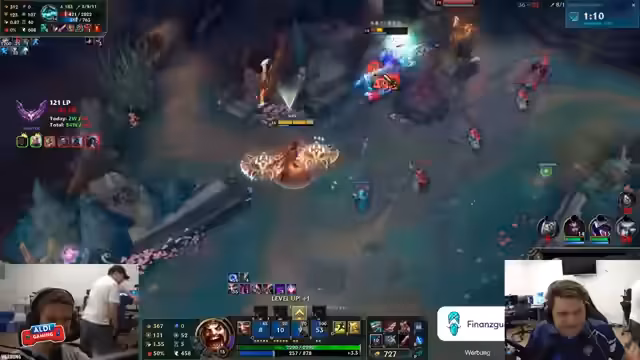 10:33:44Zwischen den Spielen werden verschiedene Themen angesprochen, darunter die Beobachtung, dass im Chat viele Personen aus ungewöhnlichen Berufen und Sportarten vertreten sind. Es wird über Promis gesprochen, die League of Legends spielen, und über die Diskrepanz zwischen der Spielstärke von Profisportlern und ihrer Liga-Einstufung. Auch werden persönliche Nachrichten im Chat vorgelesen, wie von einem Vater, dem durch den Stream Tipps für seinen Sohn gegeben wurden. Der Ton ist reflektierend und humorvoll.