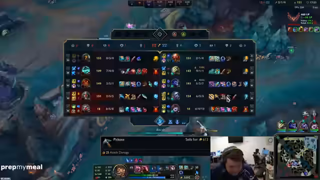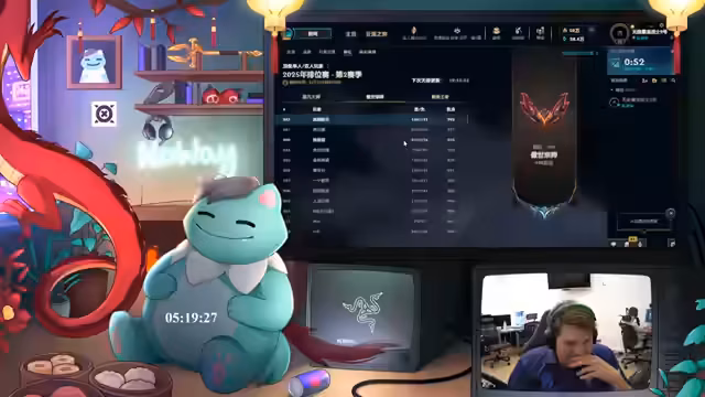 11:31:39Der Streamer beschäftigt sich intensiv mit dem Erreichen des Challenger-Rangs auf dem Taiwan-Server. Mit 608 LP in der Grandmaster-Division ist er sehr nah an dem Ziel, kritisiert aber das System, das möglicherweise verhindert, dass er aufsteigt, obwohl er mehr Punkte hat als einige Challenger-Spieler. Die langen Wartezeiten und die besonderen Bedingungen des chinesischen Servers werden diskutiert. Zudem wird ein perfektes Spiel, als Legend deklariert, erwähnt, das jedoch aus Zeitgründen nicht zu Ende gespielt werden kann.