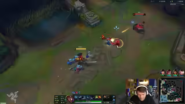 02:36:41Der aktuelle Zustand wird als desaströs beschrieben, mit einer langen Verlustserie und dem Gefühl, kurz vor einem Nervenzusammenbruch zu stehen. Es wird die eigene Existenz hinterfragt. Es wird überlegt, was mit Wertpapieren einer Firma passiert, wenn diese von einem anderen Unternehmen übernommen wird. Es wird die Frage aufgeworfen, ob das frühe Bekanntgeben einer solchen Übernahme den Aktienkurs in die Höhe treibt und somit die Übernahme verteuert. Im Spiel selbst wird ein schlechter Spielzug des Gegners kommentiert, der aber dennoch zu einem Vorteil für diesen führt. Es wird die Frage aufgeworfen, warum der Smolder des eigenen Teams keine Stacks hat und somit nutzlos ist. Es wird die Befürchtung geäußert, dass die Spiele auf dem türkischen Server ähnlich verlaufen könnten, was sehr schlecht wäre. Es wird die Erinnerung daran geweckt, dass zuerst Normal-Games gespielt werden müssen. Es wird das Main-Character-Syndrom erwähnt und das Spiel als verloren betrachtet. Es wird der Verlust von 170 LP am Stück beklagt und der Account als verkauft dargestellt. Es wird der Wunsch geäußert, dass die anderen Teammitglieder endlich eintreffen. Es wird eine Strategie für das nächste Spiel angekündigt.