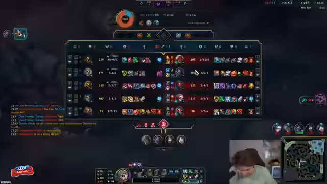 09:25:29Abschweifung vom Spielgeschehen zur Unterhaltung. Der Streamer startet eine Jury-Runde, um zwei Personen mit Cosplay-Hobby auf die Echtheit ihrer behaupteten Grandmaster-Elo zu überprüfen. Er diskutiert mit der Community über Champion-Bans, Main-Champions und die Rolle von Barden in der Bot-Lane. Die Zuschauer werden aktiv in humorvolle Entscheidungen einbezogen, um die Spannung aufrechtzuerhalten.