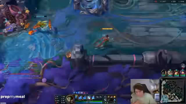 07:47:04Das Spiel entwickelt sich zu einem zwischen Genie und Wahnsinn. Nach einem erfolgreichen gank im Top, der den eigenen Talon aufbufft, wird ein vielversprechender Kill auf die gegnerische Mel mit 1HP nur knapp verpasst. Der Streamer analysiert seine Fehler und konstatiert, er habe zu oft zu gierig gespielt und hätte besser für die Maps statt der Waves positionieren müssen. Ein Teamfight endet unglücklich, da der gegnerische Malphite blind in den Busch ultet, ein riskanter Move, der den gegnerischen Teamgeist bricht. Der Streamer erkennt die kritische Gefahr der gegnerischen Mel, die nur schwer zu engagieren ist und muss nun strategisch vorgehen, um das Spiel wieder zu gewinnen.