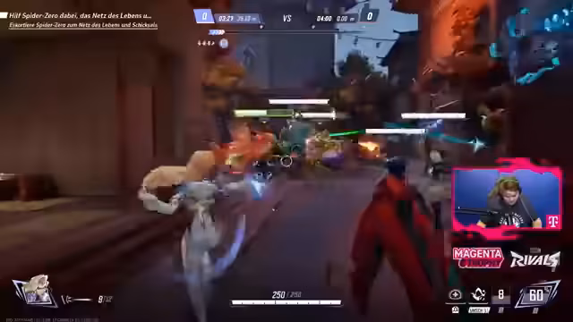 02:45:34Der Streamer konzentriert sich auf das Marvel-Rivals-Turnier, das er als wichtigstes Event auf europäischer Niveau bezeichnet. Er beschäftigt sich intensiv mit dem Champion Spider-Man und analysiert die Spielweise eines Teamkollegen. Dabei kritisiert er, dass dieser nicht oft genug auf Cloak & Dagger wechselt, um den Blind Wall-Effekt zu nutzen, und stattdessen zu sehr auf Heilung fokussiert. Der Streamer betont, das Team könne durch frühzeitiges Setzen des Blind Walls alle Vorteile davontragen, insbesondere gegen gefährliche Gegner wie Venom, an dessen blaum Schild man den Abzug des Ultimates erkennen kann.