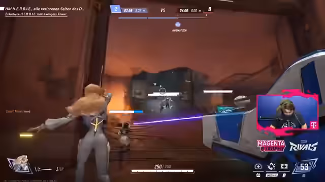 04:56:36Nach einer eher durchwachsenen Runde Soloq beginnt das Hauptevent, ein intensives Marvel Rivals Turnier. Das erste Match ist ein Best-of Three, das bereits von der Eröffnung an sehr ausgeglichen ist. Beide Teams zeigen starkes Niveau und kämpfen verbissen um jeden Vorteil, was zu einem sehr knappen und aufregenden Spielverlauf führt. Das erste Map-Ende wird nur um wenige Meter verpasst, was die enorme Spannung und die knappe Leistung beider Teams unterstreicht. Die Atmosphäre ist von hoher Konzentration und dem Willen zum Sieg geprägt.