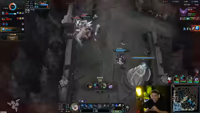 00:12:07Während eines League of Legends Spiels, in dem er und sein Team gegen eine starke Kiana-Zoe-Kombo antreten, gelingt es dem Streamer, einenShutdown zu erzielen, nachdem er selbst getötet wurde. Er analysiert den Spielverlauf und kritisiert die Leistung seiner eigenen Botlane, die es ihm unmöglich machte, gegen die gegnerische Kiana vorzugehen. Trotz dieses kleinen Erfolgs verliert das Team das Spiel letztendlich, was ihn frustriert. Er erwähnt auch das erreichen eines neuen Höchststands im Jump King Gameplay, während er gleichzeitig mit fingerlichen Problemen zu kämpfen hat.