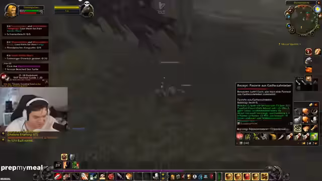 00:01:18Der Stream beginnt mit WoW auf der Dunkelküste. Es geht um die Jagd auf bestimmte Quest-Mobs wie Waldschreiter und Mondpirsch-Fänger. Der Streamer sucht nach effizienten Farm-Methoden und erwähnt einen Loot-Guide. Er beschäftigt sich mit der Gefahr des Gebiets, insbesondere durch Murlocs und soziale Mobs, die sich bei Annäherung aggressiv verhalten. Er erwähnt auch, wie man Schiffe 'ninja looten' kann, ohne alle Gegner zu bekämpfen.