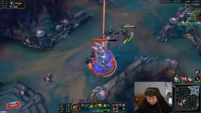 03:43:39Ein Spiel im Six-vs-Six-Modus (ARAM) wird unvorhergesehen und chaotisch gestaltet. Die ursprüngliche Absicht, den Modus nur kurz zu spielen, wird aufgegeben. Das Spiel endet mit einem Misserfolg, und der Streamer diskutiert im Nachgang über sein eigenes suboptimales Verhalten und die Unberechenbarkeit des Gameplays, als er und sein Partner von gegnerischen Fähigkeiten überrascht werden.