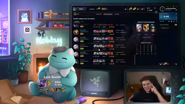 00:00:29Der Stream beginnt mit einer verspäteten Eröffnung, da die Katzen eine Blumenvase umgeworfen haben und den Wasser beschädigt haben. Der Streamer erwähnt, dass er früh um 14:30 Uhr aufgestanden ist und ein Problem mit dem neuen Bett hat, das zu langem Schlaf führt. Er gibt Einblicke in den gestrigen Tag, an dem er 100-120 LP gewonnen hat und betont die gestiegene Performance. Es besteht die Hoffnung auf gemeinsames Gameplay mit einem Lilip, wobei er ein Meme plant, in dem Lilip fit aussieht und er selbst wie ein alter Mann dargestellt wird. Ein Song-Request für Smolder wurde erhalten, der mit Renata und dem All-In Prinzip gelöst werden soll.
