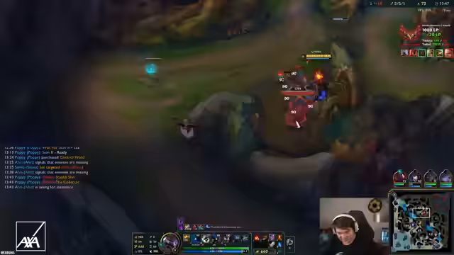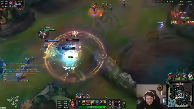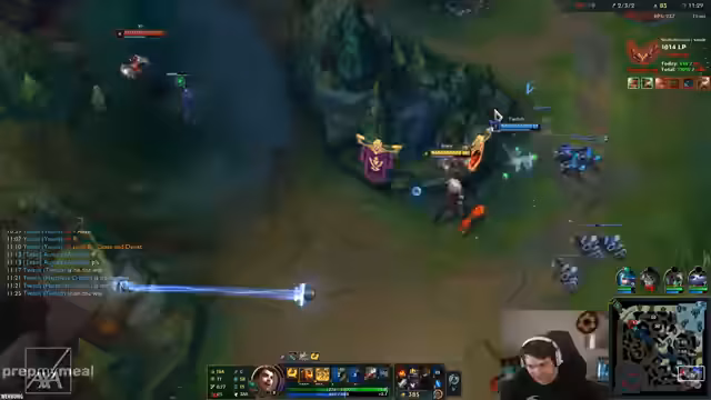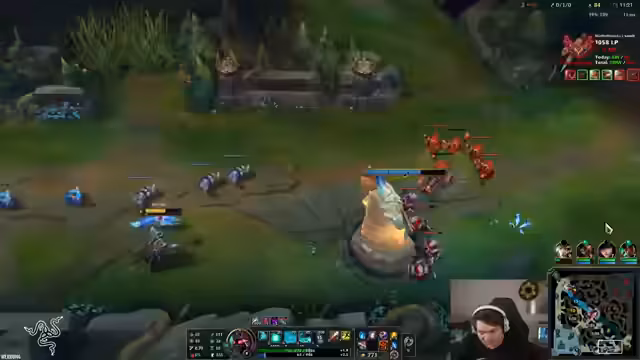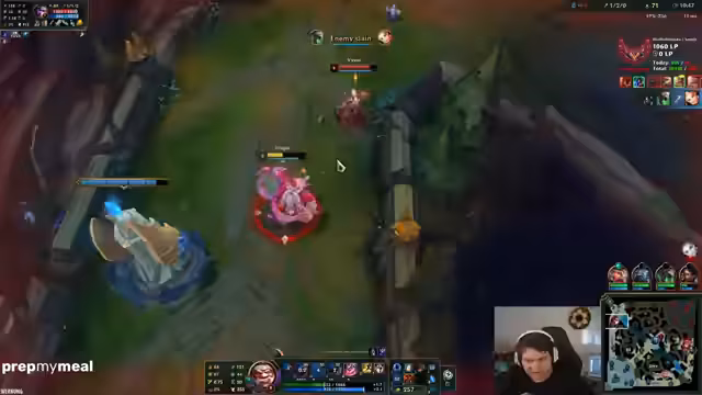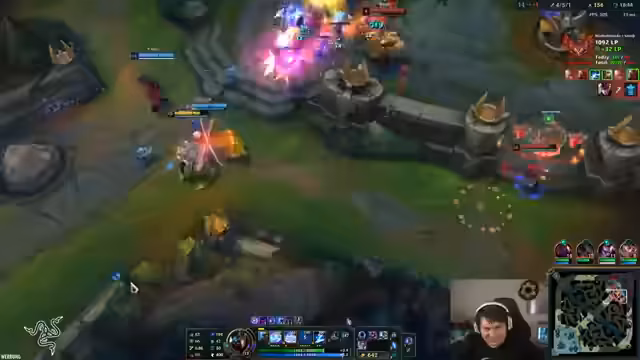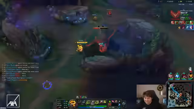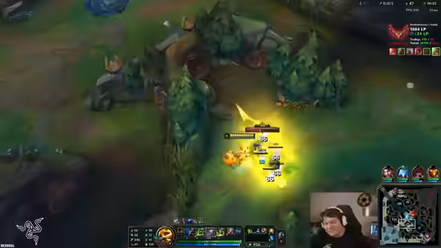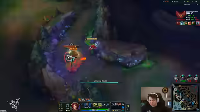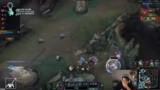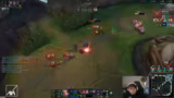 00:05:29Der Streamer analysiert die hohen Schadenswerte seines Barrel-Hits im Early-Game, merkt aber an, dass er immer auch Schaden in den Trades einstecken muss. Bei einem Versuch, die Lane zu pushen, stirbt er und kritisiert den Jungler für ein schlechtes Play, da dieser an der Scuttle gestorben ist. Er fühlt sich durch das schlechte Early-Game in seiner Lane benachteiligt und muss seinen Plan anpassen.