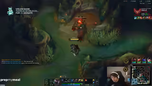 03:52:06Während des Streams werden mehrere Spiele gespielt, bei denen der Streamer die Rolle des Junglers bekleidet. Er analysiert die Situationen in den Games, kommentiert strategische Züge wie das Take von Herold und Drachen und äußert sich oft frustriert über den Verlust seines kompletten Jungle-Gebiets. Er gibt auch Champion-Analysen ab, so ist beispielsweise Volibear seiner Meinung nach nur in niedriger Elo stark, während Brand in Challenger eine sehr schwache Winrate hat und unplayable ist.