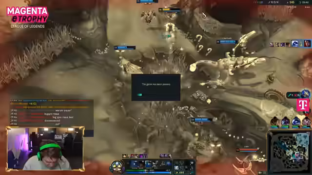 02:28:31Ein erhebliches technisches Problem tritt auf, als der Turnier-Client extrem langsam patcht. Der Support des Teams ist nicht erreichbar, was zu einer Diskussion über eine 4-gegen-4-Lösung führt. Die Crew überlegt, auf den normalen Live-Client zu wechseln, um das Spiel fortsetzen zu können. Hinter den Kulissen arbeiten mehrere Personen an einer Lösung, um das Turnier am Laufen zu halten und einen Aufgeben zu vermeiden.