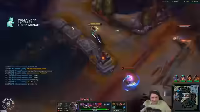 05:39:13Der Fokus liegt auf der Analyse des gegnerischen Playstyles, der sich als extrem störend und herausfordernd erweist. Das Team von Eintracht Spandau pickt gezielt Tanks und Enchanter auf den Seitenlanes, um allen Fokus auf die Mitte zu lenken und Power of Evil optimal zu unterstützen. Diese Strategie führt dazu, dass der Streamer sich in der Series 'brutal wurschtgefühlt' hat und sich sichtlich outmatcht fühlte, eine Erfahrung, die er in bisherigen Scrims nicht gemacht hat.