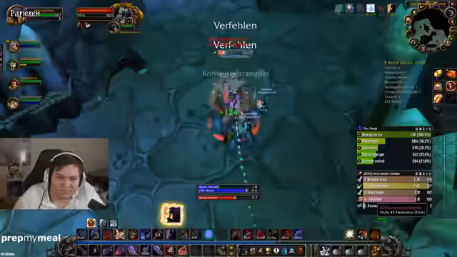 11:25:11Während des Dungeonlaufs im Pflanzenraum wird die Route im Detail besprochen. Es wird empfohlen, sich immer links an der Wand zu orientieren, um sicher den Ausgang beim Lidl zu finden und den gesamten Dungeon durchqueren zu können. Bei einem Kampf werden die Pull-Strategien erörtert, wobei versucht wird, Gegner gezielt zu stunlocken, damit diese keine Fähigkeiten ausführen können. Der Dungeon erfordert präzises Aggro-Management und Teamkoordination, um den Schaden der mobilen Gegner in Schach zu halten.