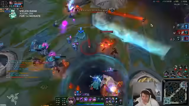 05:07:46Ein starkes Mid-Game wird als Gelegenheit für Comebacks gelobt, da der Schadensoutput in der neuen Season sehr hoch ist. Der Streamer beschreibt eine Phase, in der er einen Penta-Kill nur knapp verpasst und als 'geil' bezeichnet. Trotz dieses Erfolgs im Mid-Game folgt eine kritische Analyse des eigenen Late-Game: Er macht mehrere Fehler in Positionierung und wird von der gegnerischen Aurora hinterschnitten und getötet, was den Sieg des Spiels verhindert.