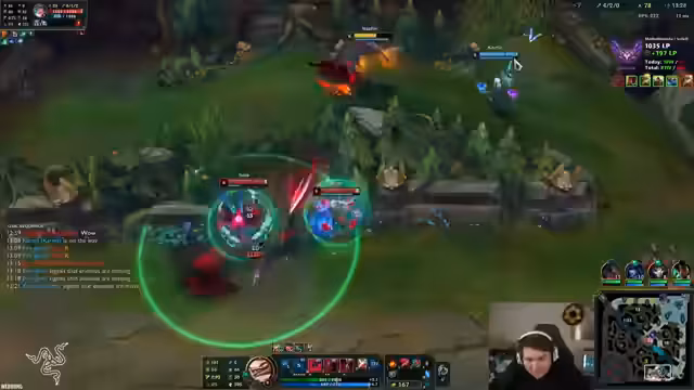 05:25:23Ein entscheidender Meilenstein wird erreicht: Über 1000 LP wurden gesammelt. Streamer und Mitspieler analysieren ihre Stats und Leistung, wobei der Lee Sin des Teams als primärer Carry identifiziert wird. Trotzdem werden Zweifel an der Rolle des Jungle geäußert und die Hoffnung auf Autofill, um die Statistik zu verbessern, laut. Diskussionen über Draft-Entscheidungen, wie den Einsatz von Jace, und die Gefahr von Invades gegen bestimmte Gegner wie Kha'Zix dominieren das Gespräch.