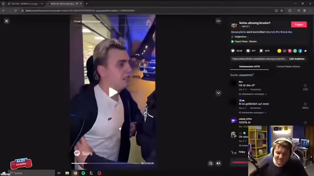 00:34:42Die Person bittet Jan, den Sound zu fixen, um weiter spielen zu können. Es wird festgestellt, dass der Sound seit dem Starten von OBS nicht mehr funktioniert. Die Person hört kurz Musik, aber das Problem kehrt zurück. Ein türkischer Mitspieler empfiehlt einen Song, der jedoch nicht gut ankommt. Es wird überlegt, Worlds Pick'em zu machen und Kevins Alltag anzuschauen. Die Person äußert Bedenken hinsichtlich der Fortschritte im Bereich der künstlichen Intelligenz (KI) und der potenziellen Gefahren, die damit verbunden sind. Es wird die Frage aufgeworfen, ob KI-Technologien reguliert oder sogar verboten werden sollten, um Missbrauch zu verhindern. Die Person diskutiert die Möglichkeit, dass KI-generierte Inhalte von älteren Menschen möglicherweise nicht erkannt werden und somit zu Fehlinformationen führen könnten. Es wird ein Video von Papa Platte mit KI-generierten Inhalten erwähnt, das angeblich sehr erfolgreich war. Die Person betont die Notwendigkeit, KI-Inhalte zu kennzeichnen, um Transparenz zu gewährleisten.