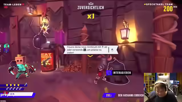 01:29:12Die Gruppe erreicht Goldstatus im Dungeon, was bedeutet, dass alles Weitere Bonus ist. Es wird überlegt, ob die erreichten Punkte nur für den aktuellen Dungeon gelten oder ob sie auch anderweitig relevant sind. Die Spieler vermuten, dass es Ranglisten für die Dungeons gibt, sehen aber ihre Chancen, dort vordere Plätze zu belegen, realistisch. Die Gruppe testet die Grenzen des Spiels aus, indem sie Kisten auf Gegner wirft und verschiedene Strategien ausprobiert. Es wird der Wunsch nach schwereren Dungeons geäußert, bei denen ein Scheitern größere Konsequenzen hat. Die Gruppe wählt den Dungeon "Schinderei", der sich später als "Heartbreak" herausstellt. Die Spieler farmen Punkte und stellen fest, dass das Zerstören von Objekten und das Finden von Kisten dabei hilft. Es wird festgestellt, dass es wichtig ist, zusammenzubleiben und sich gegenseitig zu unterstützen, um erfolgreich zu sein. Ein Spieler wird versehentlich in die Luft gesprengt, was für allgemeine Erheiterung sorgt. Die Gruppe findet Schlüssel und setzt diese ein, um neue Bereiche zu erschließen. Am Ende des Abschnitts wird ein Bonusraum entdeckt, und die Spieler erhalten Silber, was sie als Erfolg feiern.
