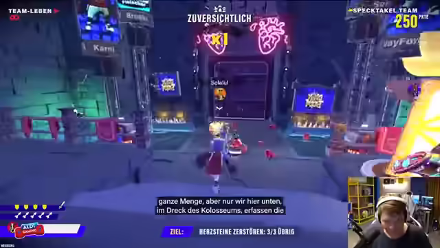 01:22:51Die Gruppe startet einen Dungeon und muss diverse Herausforderungen meistern. Anfangs gibt es Verwirrung über den richtigen Weg und Checkpoints, doch die Gruppe findet nach und nach heraus, wie sie zusammenarbeiten muss, um voranzukommen. Es wird festgestellt, dass Teamwork entscheidend ist, insbesondere beim Aktivieren von Schaltern und beim gegenseitigen Wiederbeleben nach Stürzen. Ein Spieler entdeckt eine große Kiste, was die Stimmung hebt, obwohl die Orientierung schwierig bleibt. Die Gruppe legt Schalter um und erkundet geheime Gänge, wobei sie Bronze-Trophäen und zusätzliche Punkte durch das Zerstören von Kisten findet. Es wird über die beste Vorgehensweise diskutiert, ob man sich aufteilt oder zusammenbleibt, und die Gruppe entscheidet sich, gemeinsam vorzugehen, um die Aufgaben zu bewältigen. Einige Spieler fallen herunter und werden sofort wiederbelebt, was den Spielfluss aufrechterhält. Die Gruppe findet einen Vierer-Buzzer und stellt fest, dass sie schwere Dungeons bevorzugen würde. Am Ende des Abschnitts wird ein Checkpoint erreicht, und die Spieler freuen sich über ihren Fortschritt, obwohl noch eine Kleinigkeit fehlt, um volle Punkte zu erzielen.