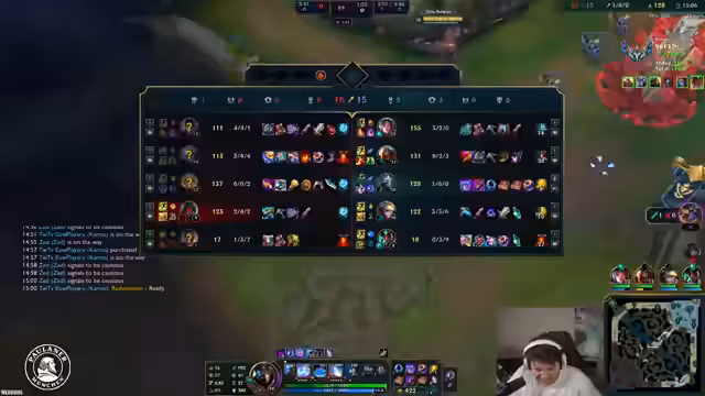 02:57:55Während des Spiels koordiniert der Streamer mit seinem Team Objektive wie Drache und Nashor. Es kommt zu Engagements, die teilweise erfolgreich sind. Er beobachtet gegnerische Bewegungen und spekuliert, ob ein Gegner gesniped wurde oder es sich um einen reinen Wortkommando handelte. Eine starke Karma-Kessante-Kombination stellt ein Problem für sein Team dar, und er muss seine Itemwahl an die Gegebenheiten anpassen, um den Endgame-Burst zu kontern.
