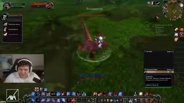 11:21:16Der Streamer reflektiert die größten Probleme im Kampf, darunter verfehlte Treffer, Paraden, Ausweichen und erneute Verfehlungen. Nach einer kurzen Unterbrechung durch einen gepennten Moment konzentriert man sich auf die Suche nach Jadefeuer-Schurken. Es wird festgestellt, dass diese selten spawnen, was die Quest herausfordernd macht. Der Streamer betont den Ehrgeiz, Level 60 zu erreichen, und entschuldigt sich für den aktuellen Leistungsdruck, verspricht aber, dass das Ziel mit Hilfe der Community zeitnah erreicht wird. Er beschreibt das Gefühl des Unterlegs, aber auch die Motivation, das Ziel unbedingt zu schaffen, während er die Quest-Belohnungen kritisiert.