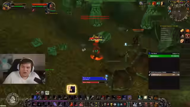 13:07:43The stream begins with intense combat in a dungeon, where the group engages with mobs like Hauglinge and Double Crit Brock. Strategic discussions emerge about pulling enemies efficiently, handling rituals, and managing aggro. Players coordinate to kill elites and discuss the creepy atmosphere of the cave, referencing Trey and the quest chain. They mention the Onyxia buff and its impact on gameplay, highlighting the challenging environment and the need for careful navigation through the dungeon's dark passages.