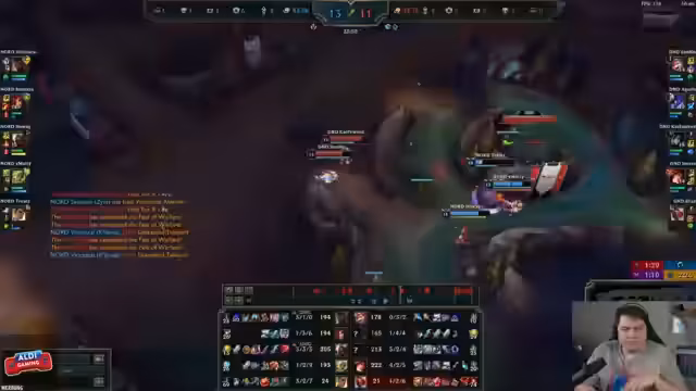 01:40:02Das Team diskutiert die Strategie, auf einer Linie zu spielen, um Flankierungen zu vermeiden, wobei ein Spieler in der Mitte Druck ausüben soll. Rakan wird gefunden, und es wird beschlossen, dass nach einem Basisgang der Fokus auf die Bot-Lane gelegt wird, da dort eine gute Vision vorhanden ist und die Gegner keine Flashs auf Varus haben. Ein Kampf entsteht, in dem Ultis eingesetzt werden, um Varus zu schützen, der jedoch stirbt. Die Teammitglieder sind über die gegnerische Positionierung verstreut, was die Frage aufwirft, wie weiter vorgegangen werden soll. Es wird vorgeschlagen, die Top-Lane aufzugeben und von Deathsmith aus zu fliegen, um das Spiel zu beenden, aber die nächste Wave ist zu hoch. Ein Timer wird erwähnt, und es wird vereinbart, dass Mitte nach der Inhibition rotiert wird. Der Fokus liegt darauf, Druck auszuüben, wobei auf Varus geachtet werden soll, der keine Flashs hat. Trotz des Todes von Rengar kann das Team das Spiel immer noch beenden, und es wird überlegt, ob man 60 HP zurückgewinnen soll. Das Team überlegt, wie man Varus unter Druck setzen kann, da dieser keine Flashs besitzt, und es wird festgestellt, dass er das Rollen hat.