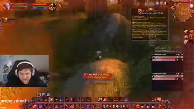 01:27:17Die Gruppe plant den Angriff auf den Elite-Boss 'Moog der Unsterbliche' (Level 44). Sie analysieren die Gegnerpositionen, darunter einen Heiler ('Geistjäger') und einen Schadenstypen ('Blitzschlag'), und koordinieren den Fokus auf Prioritätsziele. Taktische Überlegungen umfassen das Vermeiden von zu vielen gleichzeitigen Gegnern und die Nutzung von Fähigkeiten wie 'Charge' und 'Rutilation'. Nach einem Fehlversuch mit Cooldown-Problemen wird der Kampf neu gestartet, wobei Buffs und Mana-Management entscheidend sind. Die Gruppe fluchtet bei zu vielen Adds, sammelt sich neu und setzt Stealth-Techniken ein, um weitere Kämpfe zu vermeiden.