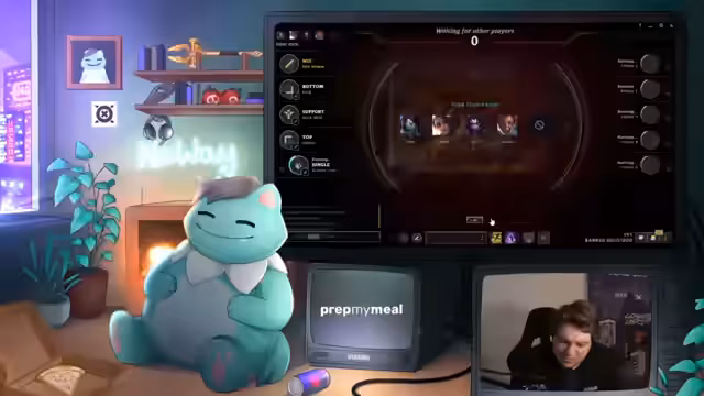 00:06:00Der Streamer erwähnt, dass die Spieler bereits angereist sind und eine gute Zeit verbringen. Er kündigt an, morgen um 11 Uhr früh das LR-Game in der Arena zu co-casten. Währenddessen wird über verschiedene Emote-Optionen und Musiktitel gesprochen. Der Streamer wechselt zwischen verschiedenen Overlays und stellt technische Schwierigkeiten fest, als er seinen Chat nicht mehr sehen kann. Nachdem das Problem behoben ist, geht es weiter mit den Vorbereitungen für die Scrims und der Analyse von Champion-Stats und Matchups.