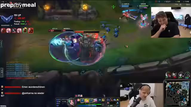 00:19:02Der Streamer äußert seine tiefe Frustration über das Spielverhalten der Botlanes auf dem chinesischen Server, die seiner Meinung nach jedes Spiel frühzeitig aufgeben. Er kann sich nicht daran gewöhnen, dass die Botlanes so oft feeden und dann sofort aufgeben. In einem aktuellen Spiel sieht die Situation ebenfalls kritisch aus: Der Jungler hat nur 10 CS, die Botlane liegt 20 CS zurück, während der Streamer selbst auf der Toplane in Führung ist. Trotz der Schwierigkeiten versucht er, das Spiel zu tragen und betont, dass er sich an dieses aggressive und aufgebende Spielverhalten der Botlanes nicht gewöhnen kann, da es die Spiele unnötig erschwert.