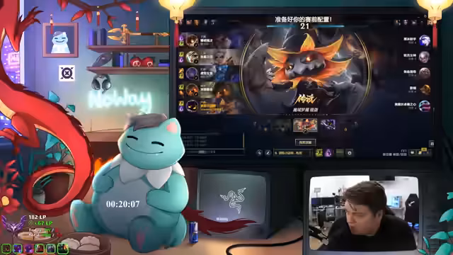 05:35:46Das Hauptziel des Streamers ist es, auf zwei chinesischen Servern die höchste Rangstufe "Challenger" zu erreichen. Neben dem aktuellen Superserver plant er auch den riesigen Ionia-Server mit 10 Millionen Spielern zu meistern. Er gibt ehrlich zu, dass dies eine extrem harte Herausforderung ist, die eventuell nicht zu schaffen ist. Aktuell befindet er sich im Master-Rang, muss aber noch viel arbeiten, um die Ranglisten zu durchbrechen, auch weil sein Spielstil an die hohe Spielgeschwindigkeit und den Druck des Servers angepasst werden muss.