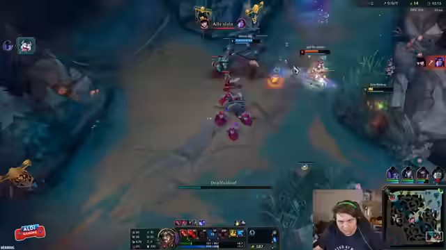 04:45:45Ein neues League-of-Legends-Spiel beginnt. Der Streamer spielt Katarina und nutzt ihre Stärke, um auf der Top-Lane Druck auszuüben. Er eliminiert den gegnerischen Darius für einen Double Kill. Trotz dieses frühen Erfolgs ist er frustriert über seinen geringen Schaden und die hohe Mobilität des Gegners Vel'Koz. Das Spiel verläuft holprig, mit emotionalen Ausbrüchen und strategischen Überlegungen, wie man das Team wieder ins Spiel bringen kann.