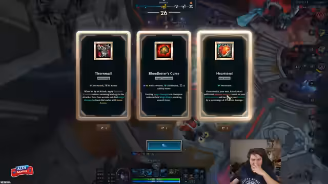07:21:58Ein weiteres Arena-Spiel offenbart die hohe Abhängigkeit vom Zufall (RNG). Der Streamer wählt einen riskanten Gambler's Blade Build, um durch Goldgenerierung zu dominieren. Dieser Plan schlägt jedoch fehl, da er die benötigte Tankiness vermissen lässt und sein Gegner durch einen übermächtigen Galio mit Triple-Curse-Augments unbesiegbar wird. Der Streamer analysiert, wie dieser Gegner durch Anhäufen von über 3000 AP und extremen Verteidigungsstats praktisch unkillbar wurde, und reflektiert die strategischen Fehler im eigenen Spiel.