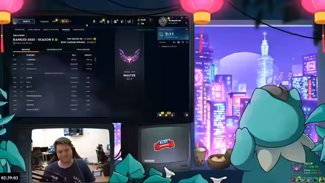 01:33:17Nach mehr als 600 gespielten LP gibt der Streamer seine mentale und physische Erschöpfung zu. Er beschreibt den Druck, jeden Tag zu gewinnen, und die Auswirkungen des intensiven Spielens. Gleichzeitig bleibt er zuversichtlich, das Ziel innerhalb der nächsten zwei Tage zu erreichen. Er diskutiert die strategische Planung für den finalen Push auf den China-Server und die Vorbereitung auf die Challenger-Rank.