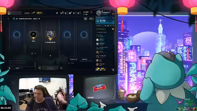 08:33:09Der Streamer berichtet über signifikante LP-Verluste durch wiederholte Spiele gegen Challenger-Booster. Er erklärt, dass es schwierig sei, gegen diese Spieler zu gewinnen, da sie weniger Fehler machten und Accounts verkaufen würden. Er überlegt, die Strategie anzupassen und möglicherweise auf den China-Server zu wechseln, was aber mit technischen Herausforderungen verbunden sei. Er betont auch die Notwendigkeit, früher am Tag zu spielen, um kürzere Wartezeiten zu haben.