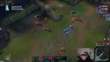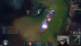 03:08:02Zur Auflockerung während des Wartens auf das nächste Game werden Gameplay-Montagen angeschaut. Zuerst wird ein Video mit den 'Smartest Movements' in League of Legends gezeigt, gefolgt von einem spezifischen Gameplay-Video eines Spielers, der einen Champion auf ungewöhnliche Weise spielt. Das Video zeigt eine komplexe Mechanik, bei der ein Minion genutzt wird, um mit einem Item zu interagieren. Der Streamer zeigt sich beeindruckt von der 'insane' Aktion und dem 'geilen Kombo'.