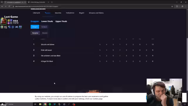 09:17:17Der Streamer diskutiert die Champion-Auswahl für die Toplane und überlegt, ob er Amumu oder Aurelion Sol bannen soll, da er Amumu hasst. Er äußert den Wunsch, Gangplank zu spielen, falls sich die Gelegenheit bietet. Er gibt ein Update zum Krokobos-Turnier, bei dem Teams wie 'Jurassic Park' (Maxim-Team) und 'Brücke-Team' ausgeschieden sind. Auch '4 Engel für Maxi' (Sartorius-Franzi-Team) ist in Gruppe 1 ausgeschieden. Die verbleibenden Teams 'Tolkien Tunny' und 'Fiddler' haben noch Chancen im Lower Bracket. Er analysiert die Teamzusammenstellung und überlegt, ob Cassiopeia eine gute Wahl gegen die gegnerische Riven wäre, da Riven ein sehr snowball-lastiges Matchup ist. Die Effektivität von Smolder auf dem Super-Server wird diskutiert, da er durch die vielen Kämpfe schnell Stacks sammeln kann. Er reflektiert über seine frühere englischsprachige Streaming-Zeit und die Auswirkungen auf seine deutsche Community, wobei er zu dem Schluss kommt, dass einzelne englische Events machbar sind, aber keine monatelangen Streams.