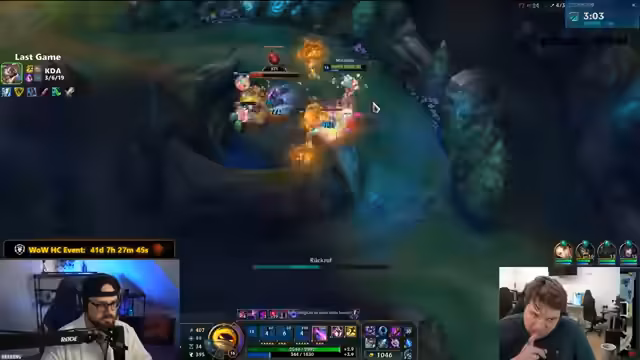 09:42:46Der Streamer versucht, sein Team zu beruhigen und einem Tilt entgegenzuwirken, da der Spielstand 10:11 ist. Er ist besorgt über die Stärke des gegnerischen Teams, das aus Champions wie Leblanc, Nidalee und Draven besteht, die alle über starke Early-Game-Fähigkeiten verfügen. Er befürchtet, dass sein Team tiltet, obwohl das Spiel über den Erwartungen läuft, da die Gegner hauptsächlich Early-Game-Champions haben und das eigene Team, abgesehen von der Bot-Lane, ebenbürtig ist. Er verteidigt den Rammus-Spieler, der seiner Meinung nach alles richtig macht. Trotz der Schwierigkeiten glaubt er, dass er als Gangplank im späteren Spielverlauf das Spiel carrien kann. Er ist jedoch frustriert, dass das Team aufgeben will, obwohl das Spiel „winnable“ ist, und lobt seinen Rammus-Spieler für dessen Entschlossenheit, nicht aufzugeben. Er plant, den Draven mit einem Taunt und One-Hit auszuschalten. Trotz eines Flash-Fights und eines 4/0/4-Scores ohne Kopfgeld, was er als schlechtes Zeichen interpretiert, bleibt er optimistisch, dass er später im Spiel übernehmen kann.