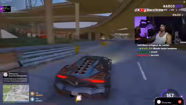 00:32:39Der Streamer trifft auf Mitglieder von 'Ironfield', einer Familie, die sich auf Racing spezialisiert hat. Er erinnert sich an ein früheres Treffen mit 'Jesse' und diskutiert mit ihnen über ihre Ziele. Der Streamer schlägt vor, ein richtiges Straßenrennen zu fahren, da er die aktuellen Rennen auf 'Cayo Perico-Feldern' oder 'Öl-Feldern' als zu niveaulos empfindet. Er möchte eine Racing-Szene etablieren, in der Konflikte durch Rennen gelöst werden können, anstatt durch Gewalt. Er stellt sich vor, dass man gegen Fahrzeugpapiere fahren könnte, wenn man ein zu großes Ego hat. Er tauscht Nummern mit 'Massimo' aus und plant, sich später für ein Rennen zu melden. Anschließend fragt er die Zuschauer nach Ideen für eine Side-Quest um 21:30 Uhr, wobei 'Sprayen bei Santana' als Vorschlag kommt.