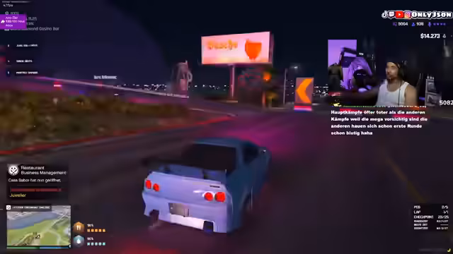 05:22:23Es wird eine Idee für regelmäßige Treffen am Casino-Parkplatz besprochen, die Tuning-Treffen, Musik und andere Events umfassen sollen. Der Streamer schlägt eine Kooperation mit dem Casino-Parkplatz vor, um gemeinsame Veranstaltungen zu organisieren. Der Ansprechpartner des Casinos zeigt sich offen für die Idee und gibt die Erlaubnis, den Parkplatz für Events zu nutzen. Es wird ein Event für das nächste Wochenende geplant, das ein Dreiviertel-Meilen-Rennen mit freier Fahrzeugwahl beinhalten soll. Die Erlaubnis für die Nutzung des Casino-Parkplatzes wird direkt erteilt, und es wird vereinbart, dass der Streamer sich noch einmal melden wird, um die Details zu besprechen. Die Teilnehmer des Rennens werden angewiesen, ohne Ghosting zu fahren, um Pitting zu ermöglichen, und es wird ein 1-gegen-1-Rennen auf den Ölfeldern mit einem Einsatz von 0 und maximal 5 Spielern vereinbart.
