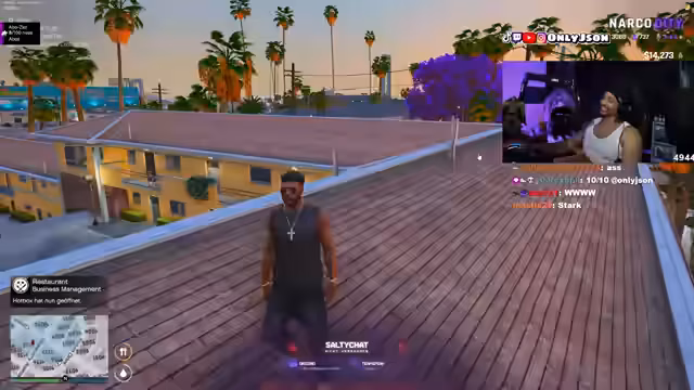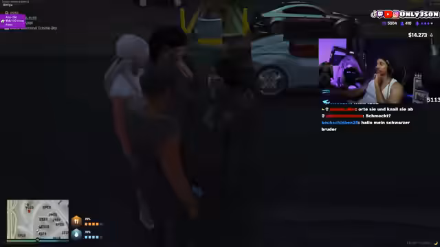 00:35:59Der Streamer begibt sich auf eine Spraying-Mission bei Santana und interagiert mit verschiedenen Charakteren. Er trifft auf 'Luna Sinclair' und versucht, sie zu beeindrucken, wird aber abgewiesen. Er kauft fünf Sprays, da er 'broke ass' ist. Anschließend trifft er auf 'Ahl Ahmad Patron', der ihn wegen seines Wagens konfrontiert. Der Streamer entschuldigt sich und Patron warnt ihn vor 5000 Libanesen und Gurten, die aufstehen würden, wenn er seine Kiste anzündet. Später trifft er auf Xiao, der seine Outfits kritisiert, und sie diskutieren über die Ästhetik von Kleidung und LED-Schuhen. Der Streamer erhält einen Anruf von Santana, die sich über Prinz und Xiao beschwert, die sie angeblich 'geknallt' haben. Der Streamer versucht, die Situation zu klären und legt auf, um sich später bei ihr zu melden.