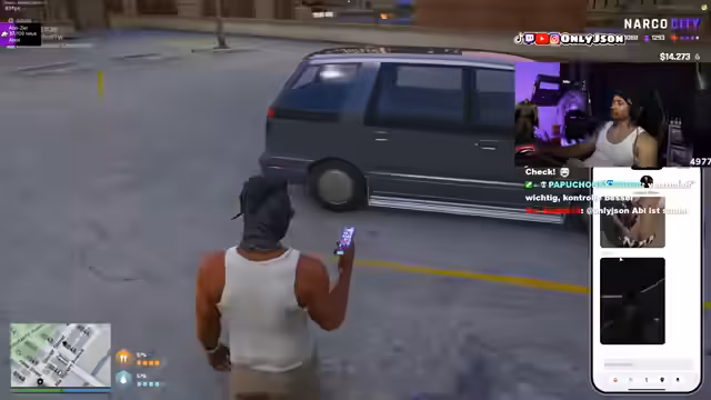 00:50:26Nachdem der Streamer zwei Sprays anbringen konnte, entkommt er nur knapp einer Verfolgung. Er erhält einen Anruf von 'Emily', legt aber schnell wieder auf, da er 'zu tun hat'. Er muss einen Call mit 'Xiao' und 'Hill' machen, um die Mission 'Ballers Route' vorzubereiten. Die Verbindung ist schlecht, aber er betont, dass er sie in 15 Minuten am FIB HQ braucht. Er schickt ihnen den Standort und drängt sie zur Eile. Er trifft sich mit 'Flair' und bespricht die Mission. Flair muss sich umziehen, da sein aktuelles Outfit zu auffällig ist. Der Streamer versucht, 'Hades' und 'Hill' zu erreichen, die angeblich noch 'connecten' oder im 'Loading Screen' sind. Er betont die Einzigartigkeit von Narko City mit seinen HUD-Anpassungen und der Performance des Klamottenladens.