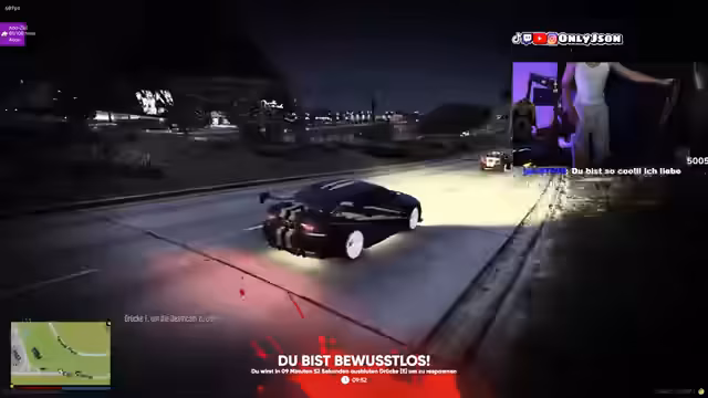 05:17:47Der Streamer und sein Team befinden sich in einer intensiven Verfolgungsjagd, bei der ihr Fahrzeug beschädigt wird. Trotz der Schwierigkeiten versuchen sie, den Gegner einzuholen, der bereits die Grenze erreicht hat. Die Anspannung ist hoch, da das eigene Auto kaum noch Motorleistung hat und die Cops möglicherweise eingreifen könnten. Die Situation spitzt sich zu, als sie den Gegner am Hafen fast erreichen, doch dieser entkommt erneut. Es wird über eine alternative Route spekuliert, da die ursprüngliche Markierung unklar ist. Trotz der Herausforderungen und eines beinahe Motorschadens gelingt es ihnen, das Rennen fortzusetzen. Nach dem Rennen wird die Leistung des Gegners anerkannt, und es wird über ein weiteres Rennen auf den Ölfeldern gesprochen, diesmal unter faireren Bedingungen und mit denselben Zielen für alle Teilnehmer.